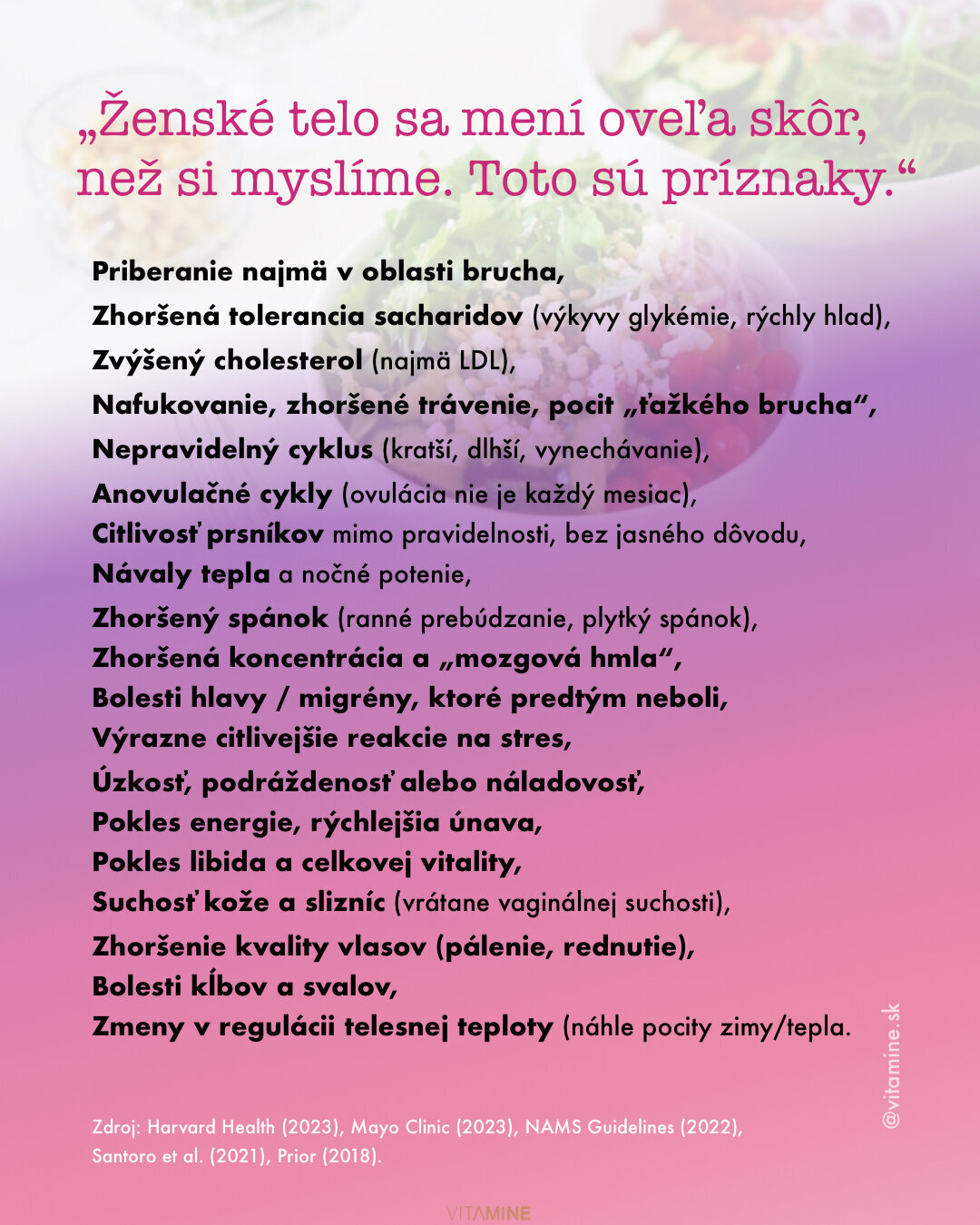 Perimenopauza je obdobie pred menopauzou, kedy sa vaše telo pripravuje na ukončenie menštruácie. Perimenopauza sa niekedy nazýva aj menopauzálna tranzícia. Ženy začínajú perimenopauzu v rôznom veku. Príznaky, ako napríklad nepravidelná menštruácia, si môžete všimnúť niekedy po štyridsiatke. Niektoré ženy si však zmeny všimnú už v tridsiatke alebo až v päťdesiatke.